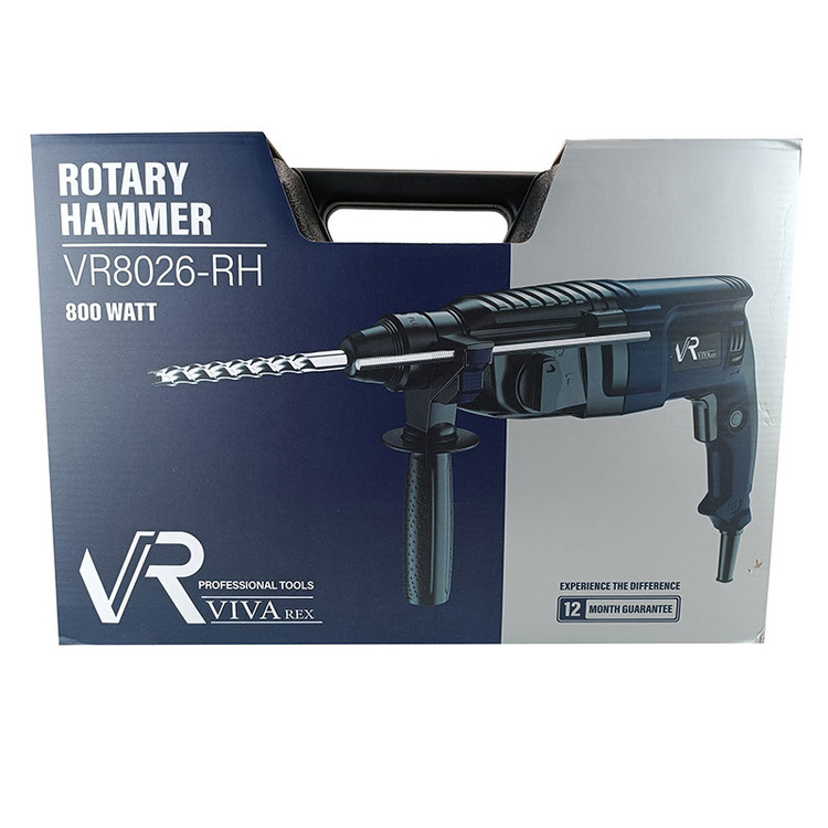 800 وات قطر مته کاری در بتن 26 میلی متر دارای 3 حالت کاری (دریل – تخریب – دریل چکشی ) دارای کلید چپ گرد و راست گرد و میله تنظیم عمق مجهز به دکمه قفل کن در حالت روشن جهت کار مداوم مجهز به کلید گازی جهت کنترل سرعت مجهز به دسته محافظ با پوشش ضد تعریق دارای سه نظام اضافه بهمراه 3 عدد مته و 2 عدد قلم دارای کیف قابل حمل ساخت کشور چین